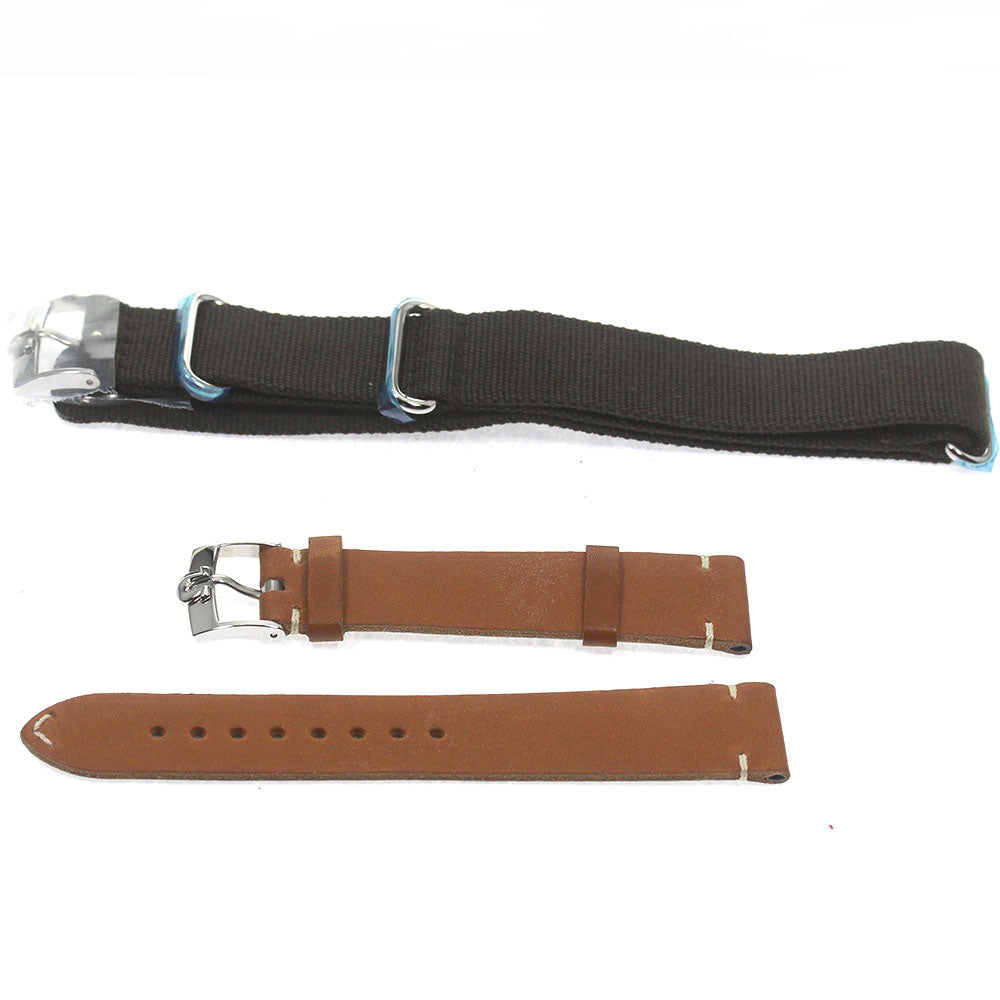 | 付属品 | 外箱、内箱、保証書(カード)、取扱説明書、革ベルト、ナイロンベルト 余り駒 6コマ (約4.0cm) |