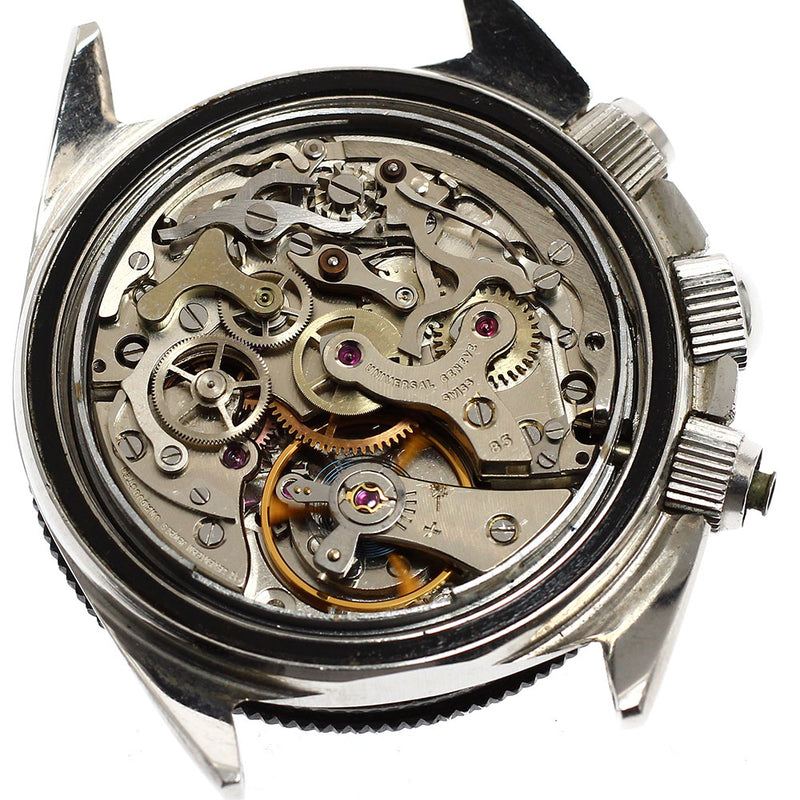 | 備考 | ・リューズポイントが甘い・手巻き滑り・針滑り・クロノボタンの2時と4時部分欠損、以上の不具合がありますので訳あり品として出品させて頂きます。返品、交換、無償修理等は一切お受けできませんので予めご理解の上でのご入札をお願い致します。 |